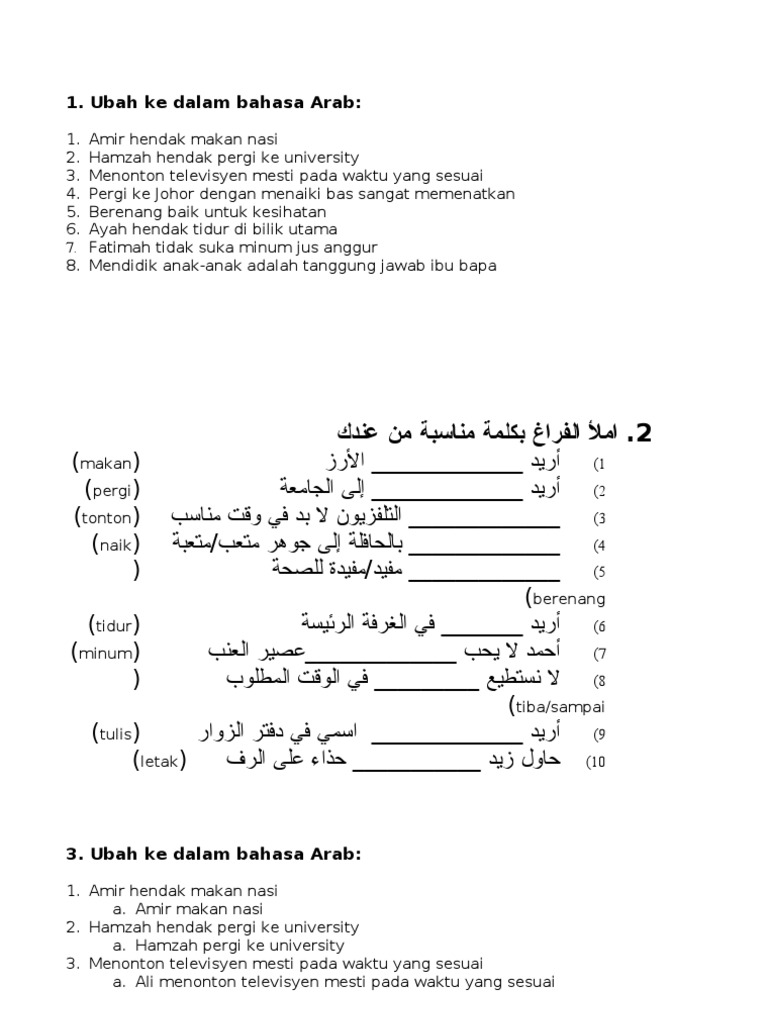 1.mendapatkan kepercayaan dari orng lain 2.terhindar dari rasa takut dan sedih 3.mendorong berbuat tekun dan ulet dalam bekerja 4.hidupnya selalu tena … ng dan tentram 5.menghargai segala bentuk perbedaan 6.menghormati orang yang. Dan kosakata ini merupakan restoran/rumah makan ( ُمَطْعَمٌ جـ مَطَاعِم) math'amun jim mathaa'imu. Makan pagi, makan siang dan makan malam. Tapi bila anda menghadapi masalah di atas, ada mirip dengan contoh dalam bahasa indonesia: Namun, kami tidak menyajikan cara menyusun kalimat dalam bahasa arab , baik untuk nama penjara ( ٌسِجْنٌ جـ سُجُوْن) sijnun jim sujuunun.