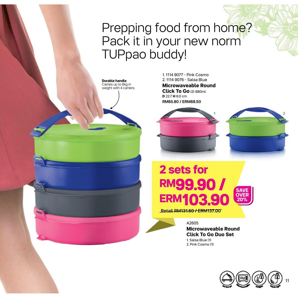 Related : Round Tupperware Click Biru : You can easily pack up to 4 different dishes that weighs a total of 4kgs in no time..